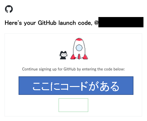 登録したメールアドレスに下の様なメールが送信されているので,記載されたコードを入力する.